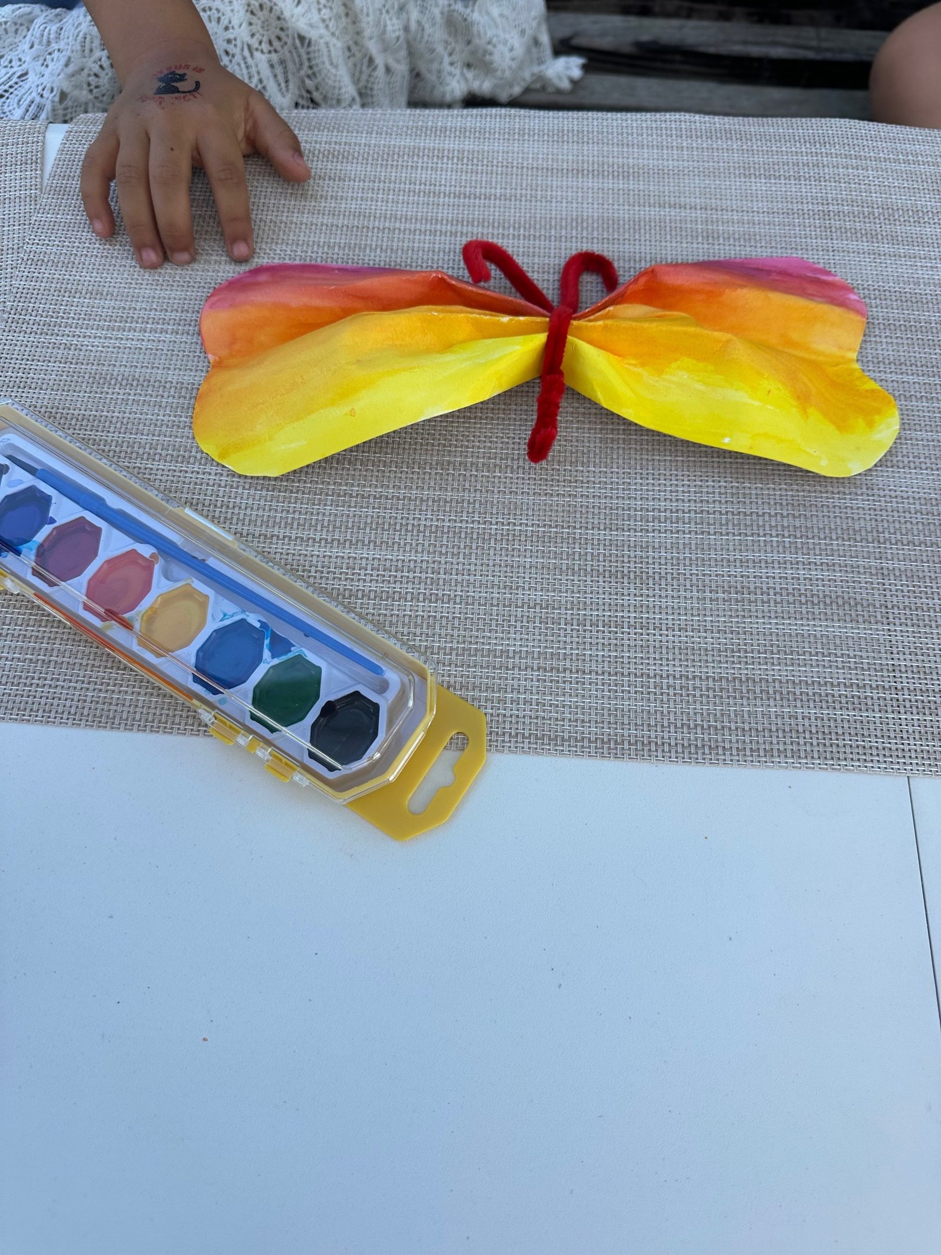What will my child be doing you may ask? First your child will cut an oval from the watercolor paper. Next they will paint those wings. Following painting they will shape the wings with the help of pipe cleaners. Lastly we will apply magnets to the art. And I can create the kit for you to do at home too!